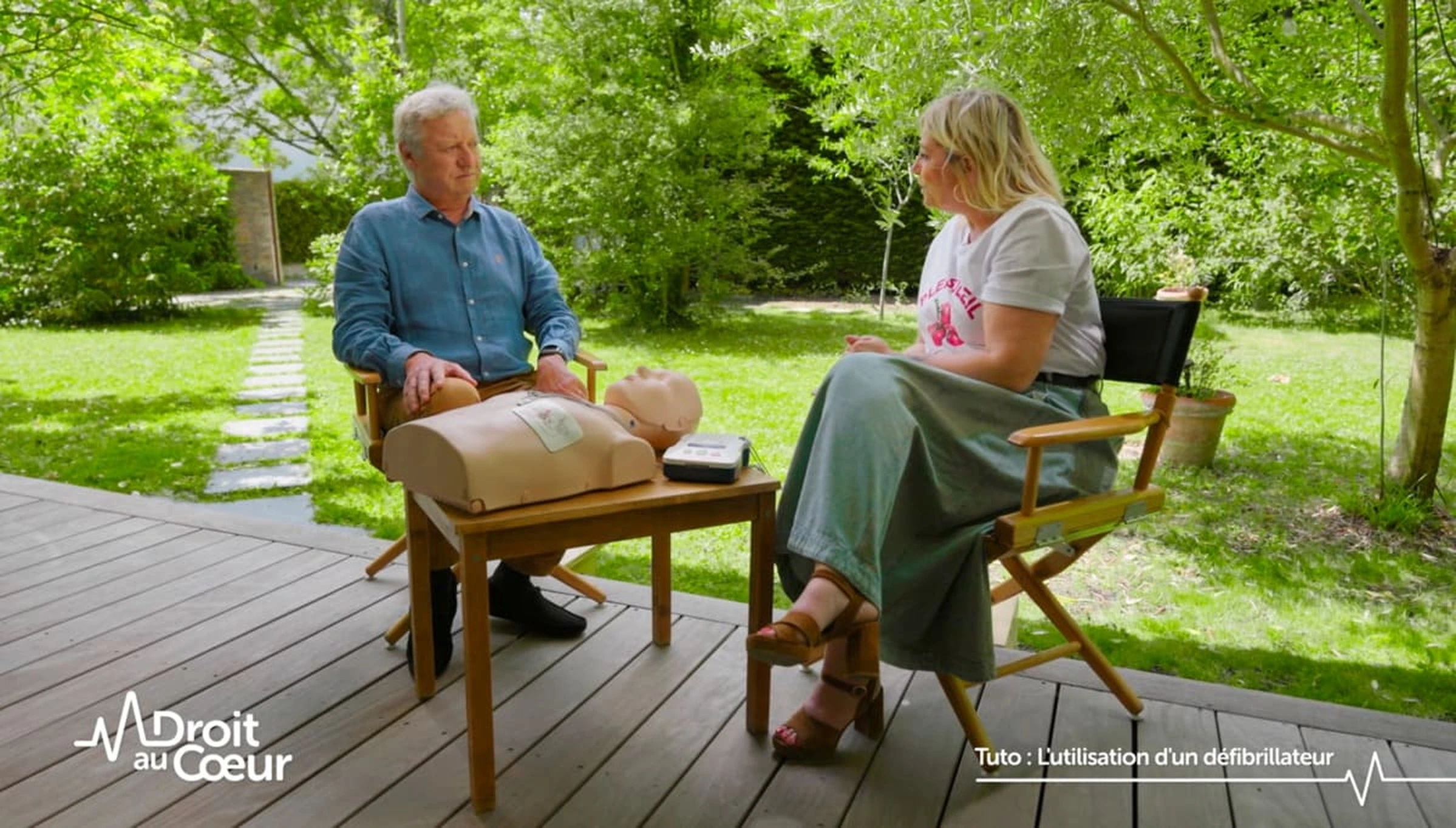 Dans le programme Droit au Cœur de M6 parrainé par la Fédération Française de Cardiologie, Flavie Flament s'initie aux Gestes Qui Sauvent.